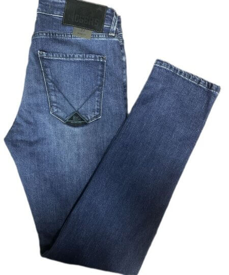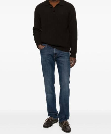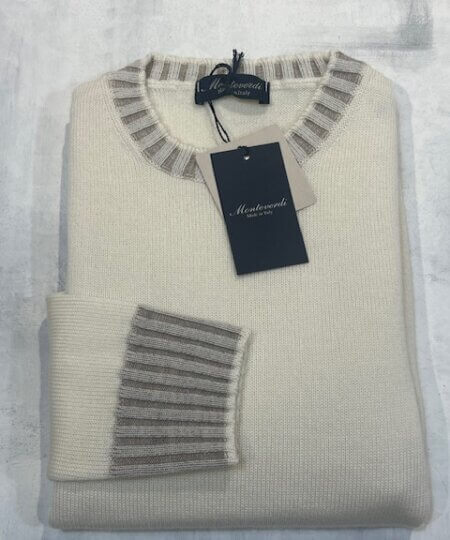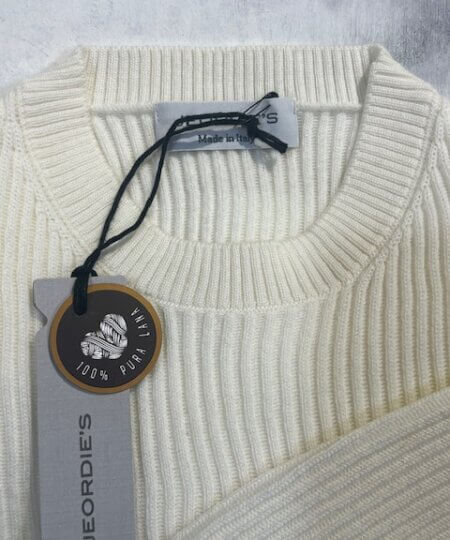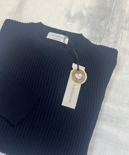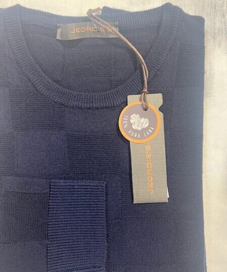 Maglia girocollo JEORDIE’S lana extrafine 100% lavorata disegno geometrico col. blu navy