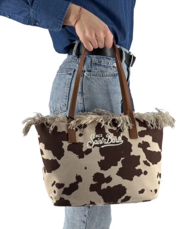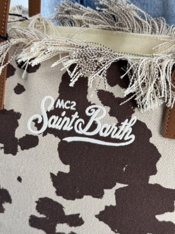 Borsa donna MC2 Saint Barth City BAG MID Fringe canvas COW WEST 18 EMB