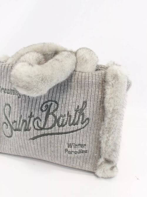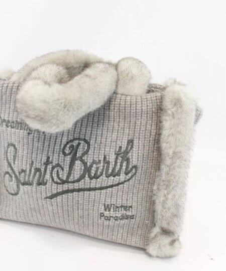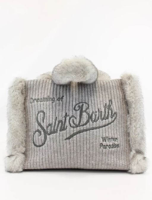Borsa donna MC2 Saint Barth morbida a mano Colette shearling rib in misto lana a trecce GRIGIO