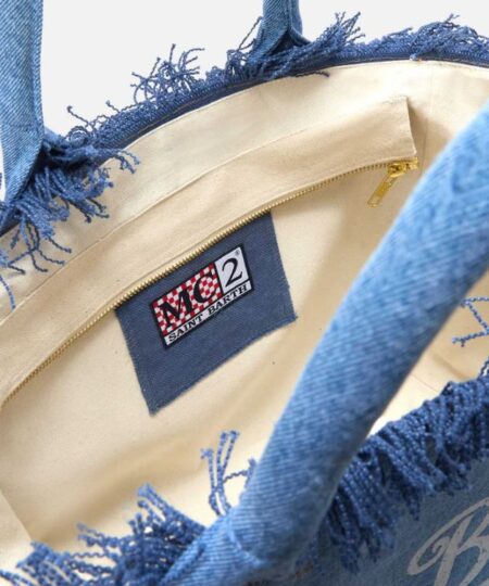La Borsa Vanity regular è realizzata in tessuto denim lavaggio medio con struttura morbida e finitura autentica. Le frange laterali e sul bordo superiore aggiungono movimento al modello, mentre il logo stampato sul fronte valorizza il design con un dettaglio grafico distintivo. Capiente e funzionale, è dotata di chiusura superiore con zip e tasca interna per organizzare gli essenziali.