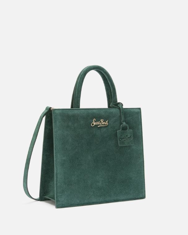 Borsa MC2 Saint Barth a mano Shop Bag Midi in pelle scamosciata Verde