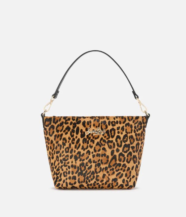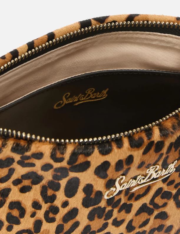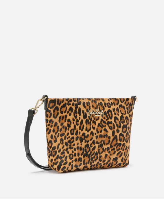 Borsa MC2 Saint Barth a spalla Aline Bag in pelle spazzolata e cavallino leopardato