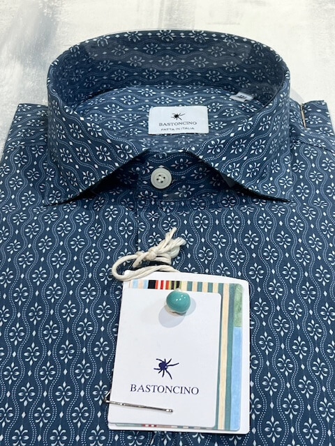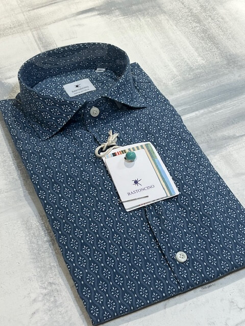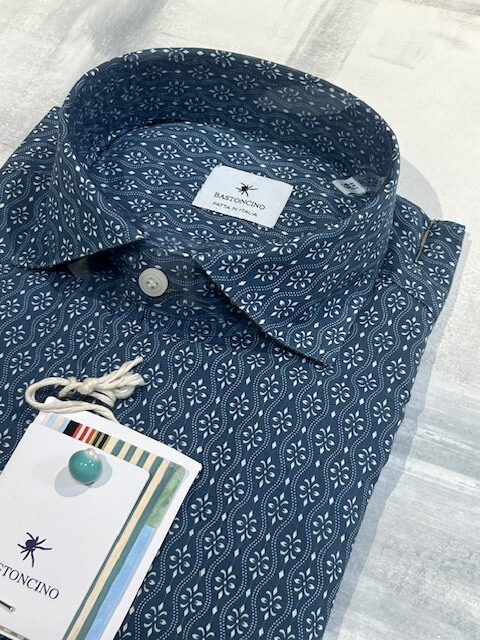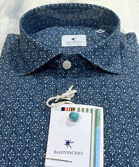 Camicia da uomo in tonalità blu lavato con raffinato motivo giglio in fiorentino, ideale per la stagione estiva. Realizzata in tessuto leggero e traspirante, come cotone o misto lino, garantisce comfort anche nelle giornate più calde. Il design a fantasia dona un tocco moderno e dinamico, perfetto per valorizzare outfit casual o smart-casual.