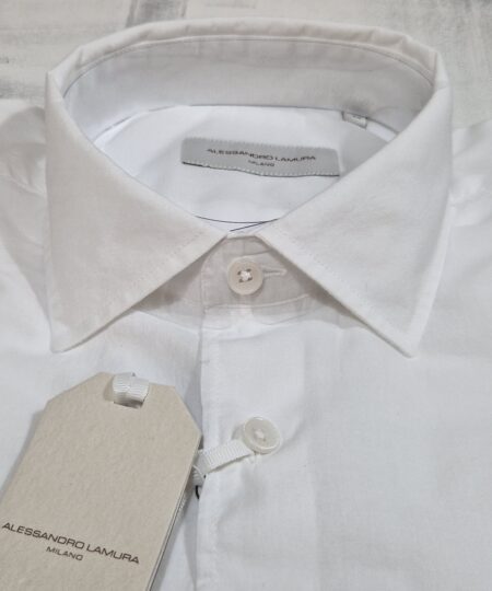 Camicia slim fit ALESSANDRO LAMURA in mussola di cotone TEAM04 – BIANCO