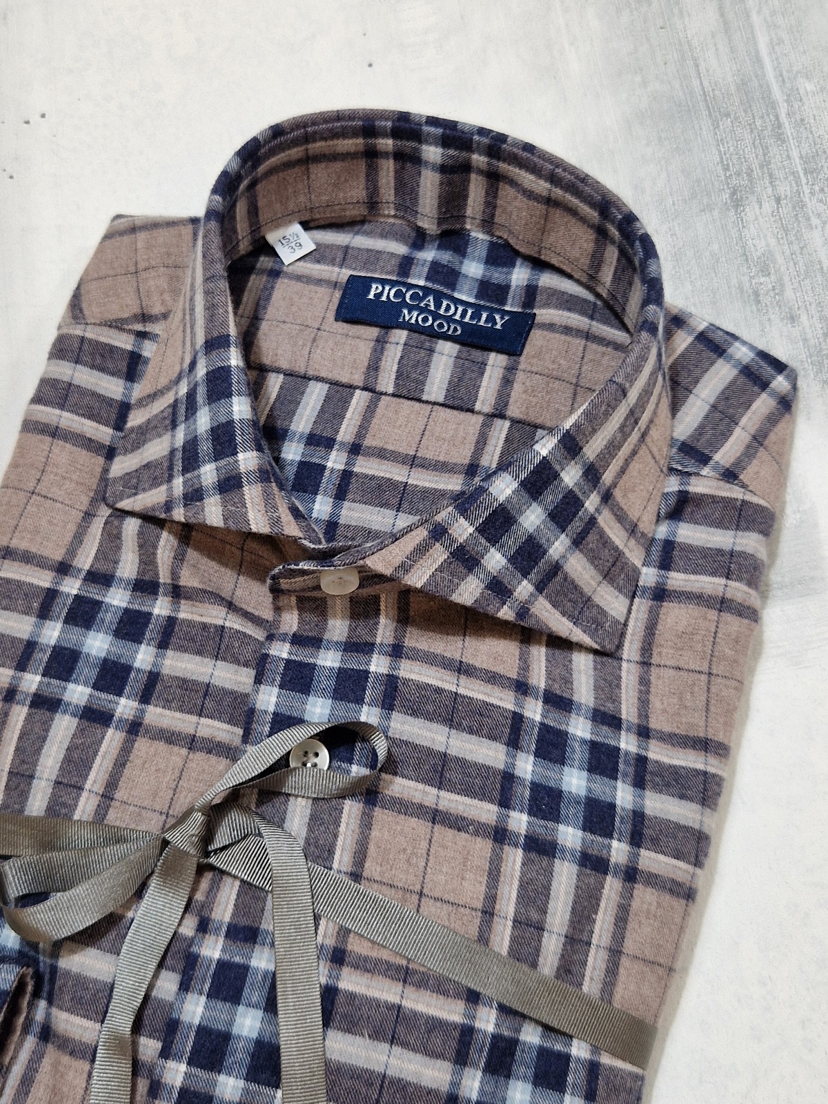 Camicia slim fit PICCADILLYMOOD in cotone Check grigio/blu