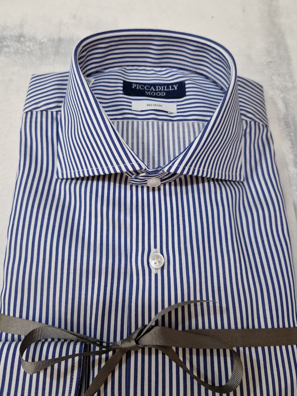 Camicia slim fit PICCADILLYMOOD in cotone NO STIRO riga Blu