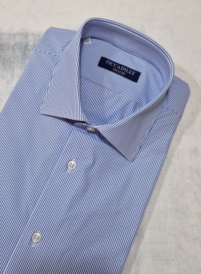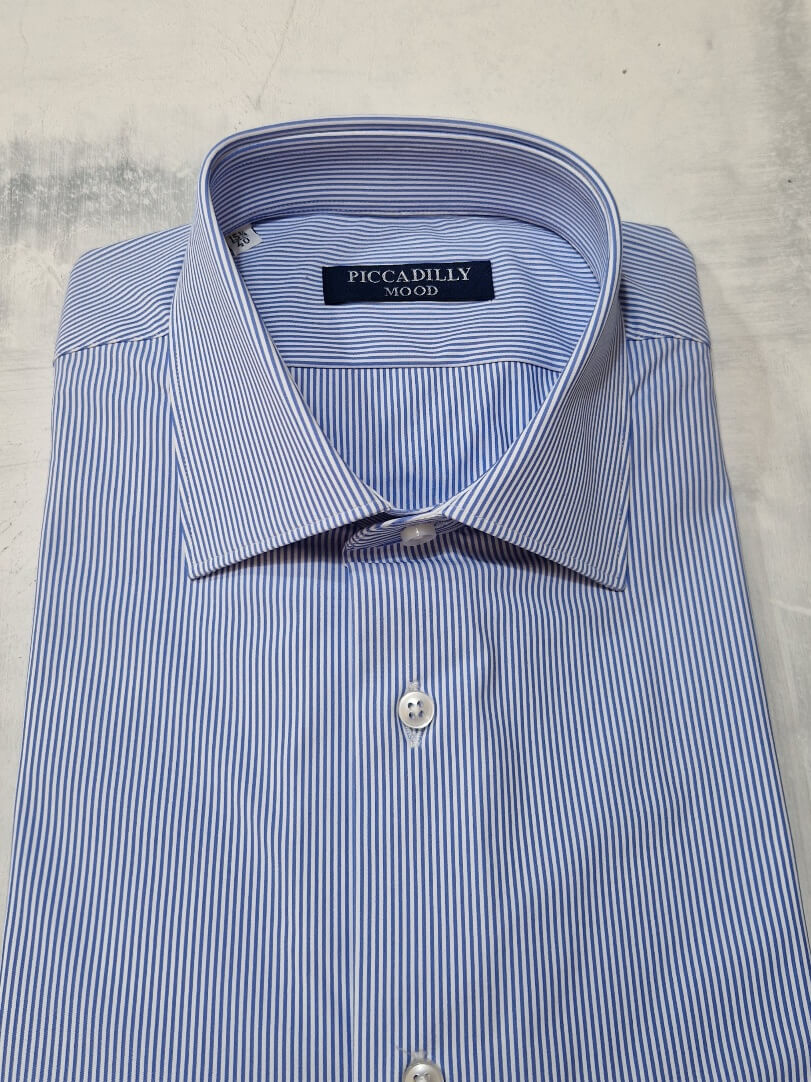 Camicia slim fit PICCADILLYMOOD stretch riga Azzurra