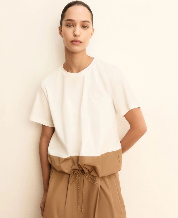 Tessuto a navetta 100% poliestere; tessuto a maglia 95% cotone, 5% elastan.