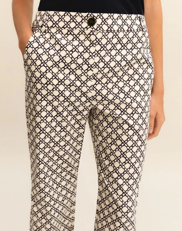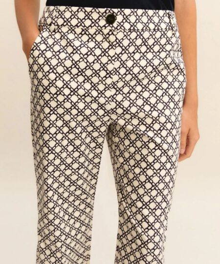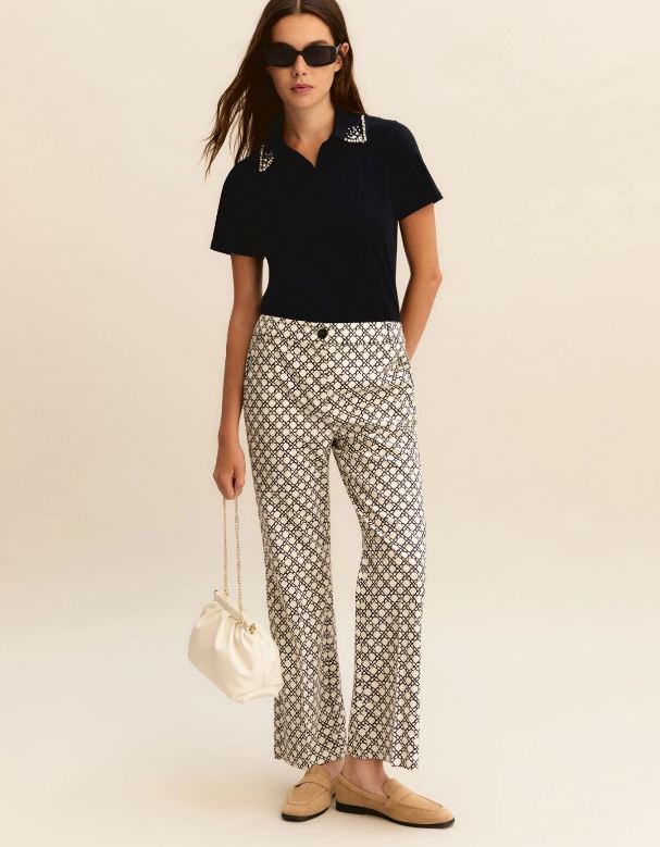 Affronta la bella stagione con il tocco raffinato e versatile di un pantalone flare. La fantasia geometrica aggiunge quel take speciale che lo rende unico e subito riconoscibile.