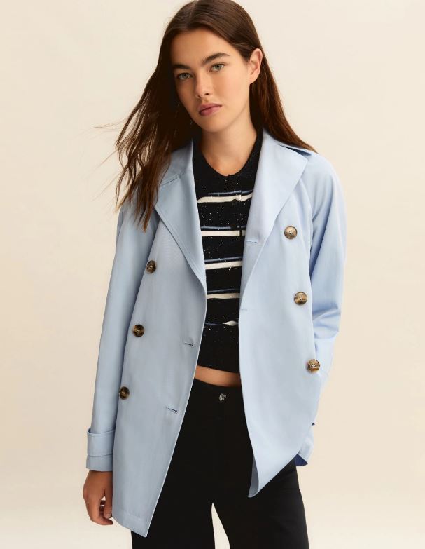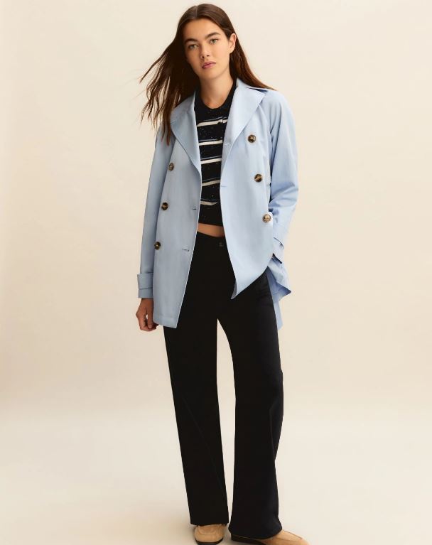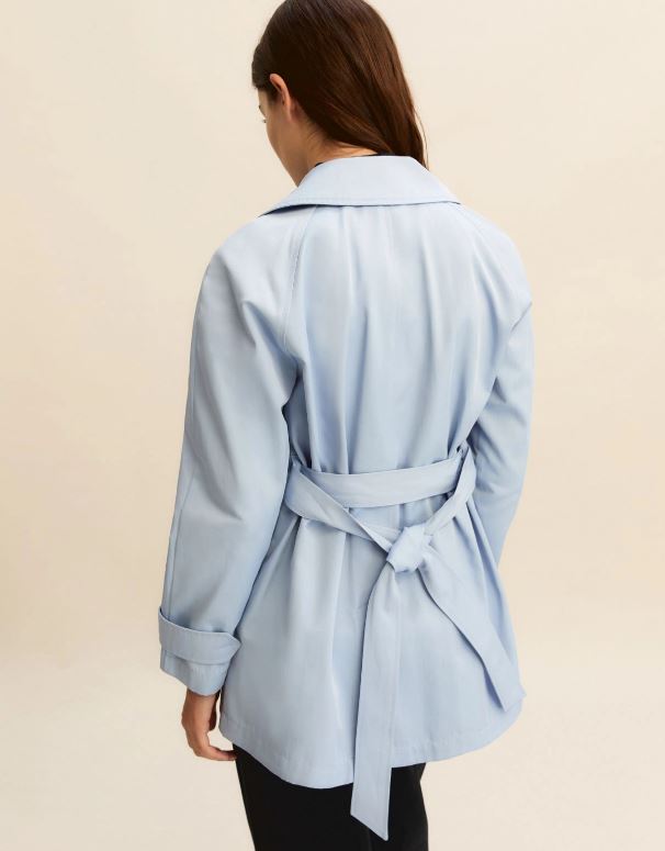 Se il tempo è incerto ma lo stile è definito, questo è il trench per te: corto, antigoccia, con cintura per definire il punto vita e slanciare la silhouette.