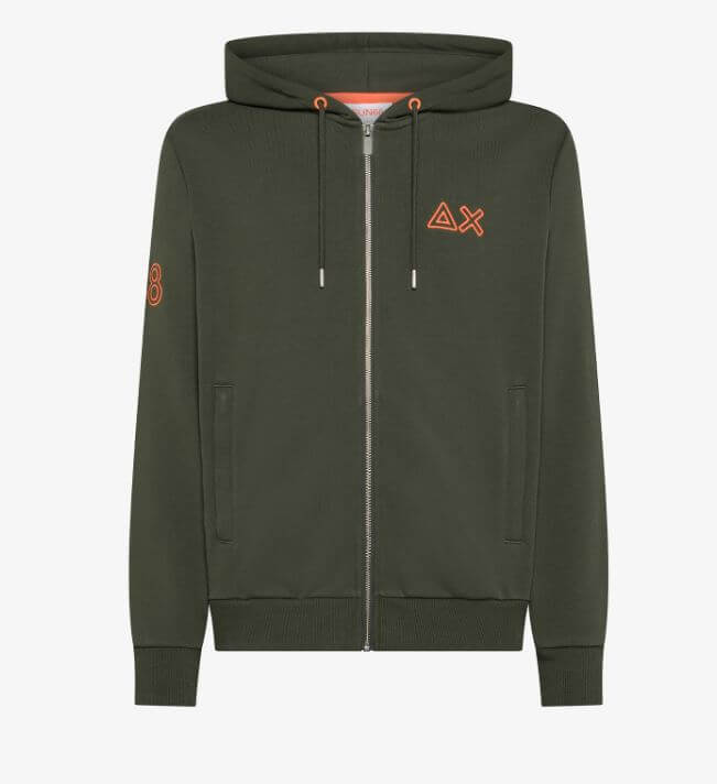 Felpa SUN68 uomo in cotone con cappuccio e logo fluo – MILITARE SCURO