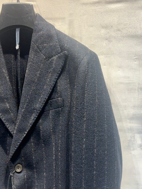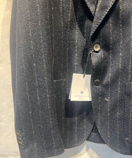 Giacca monopetto A. GILLES rever a lancia gessata col. blu con riga cioccolato