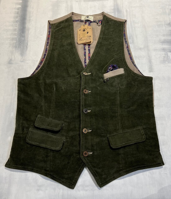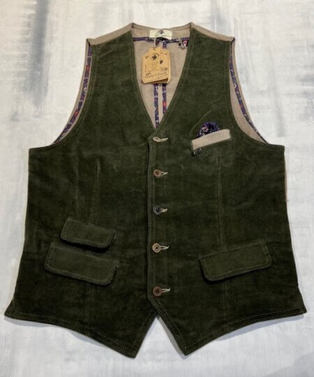 Gilet Garry’s Earth ZOD Dis. 18 in velluto VERDE MILITARE / BEIGE