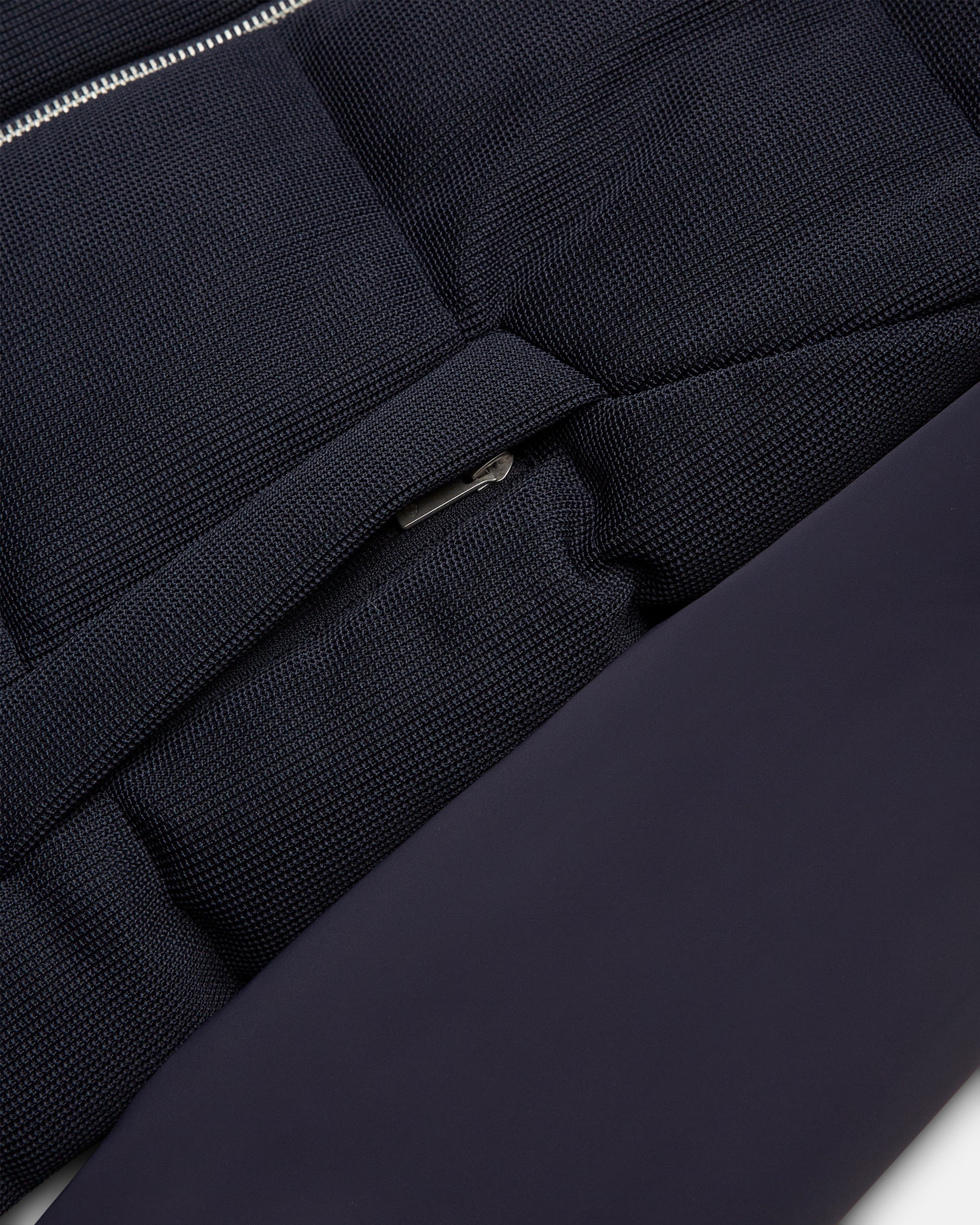 Giacca con cappuccio in doppio tessuto• Vestibilità morbida• Corpo in tessuto a maglia ingegnerizzato Tricotech® trapuntato• Maniche in tessuto tecnico• Imbottitura sostenibile Sofeelate®• Cappuccio fisso• Zip frontale a doppio cursore