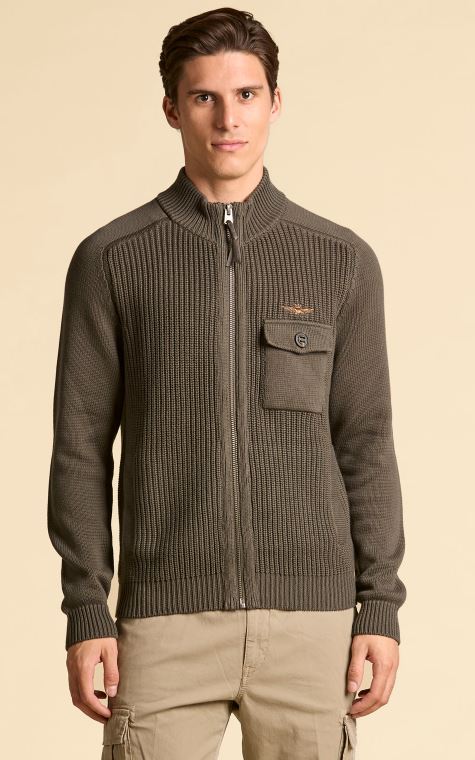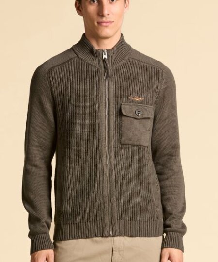 Maglia full-zip in cotone costa inglese AERONAUTICA MILITARE col. grigio lavato