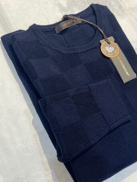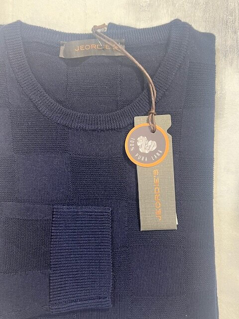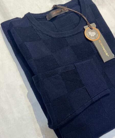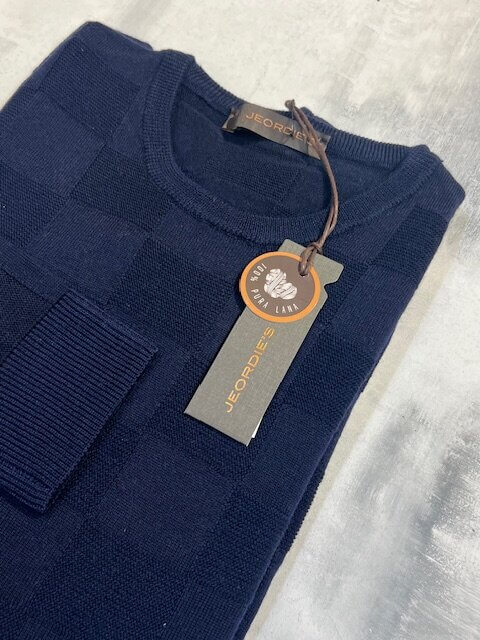 Maglia girocollo JEORDIE’S lana extrafine 100% lavorata disegno geometrico col. blu navy