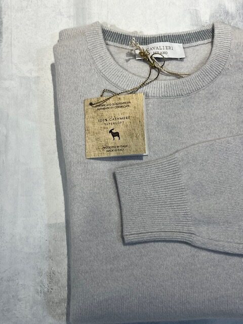 Maglia girocollo platinum collection CAVALIERI Milano 100% cachemire col.nebbia 110
