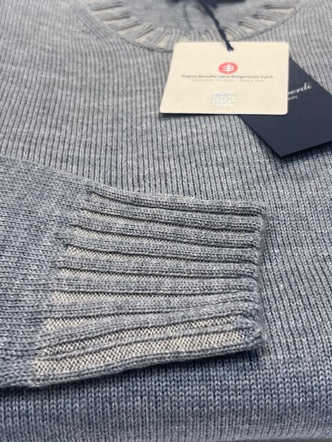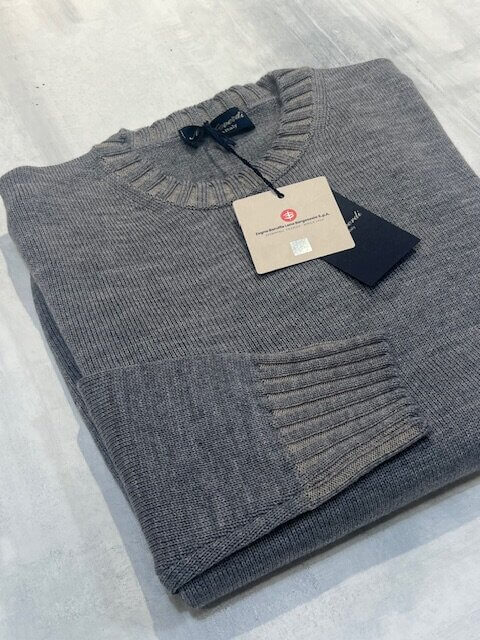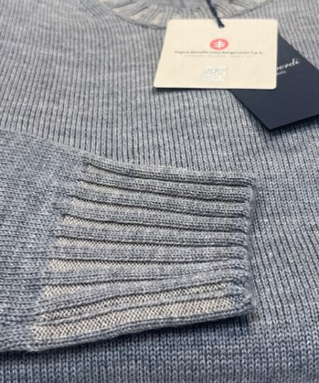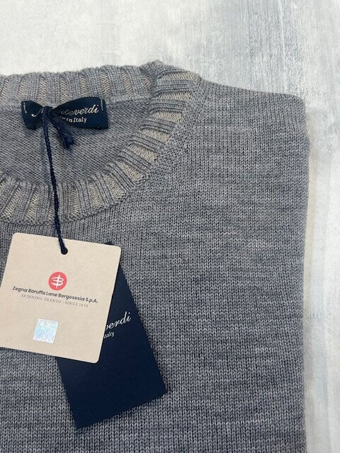 Maglione girocollo MONTEVERDI in 100% lana merinos extrafine finezza 7 col. Grigio