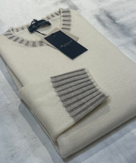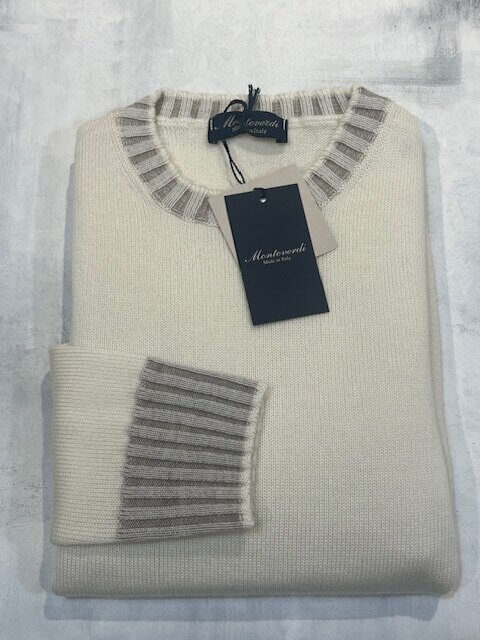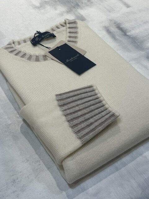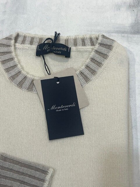 Maglione girocollo MONTEVERDI in 100% lana merinos extrafine finezza 7 col. Panna
