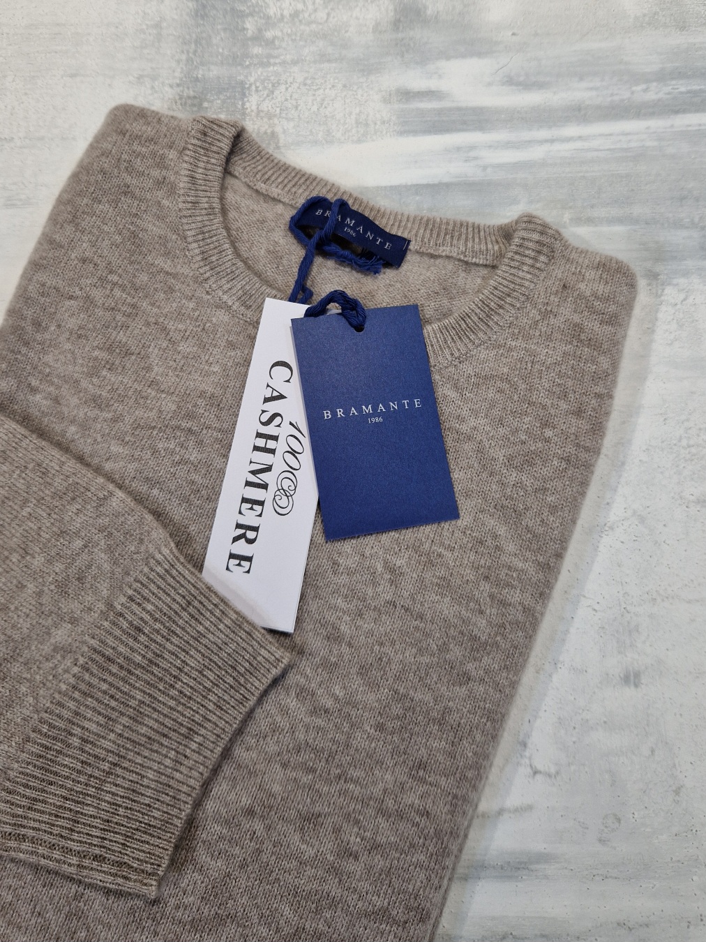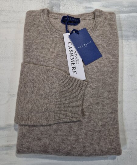 Maglione girocollo uomo BRAMANTE in 100% cashmere melange – Tortora