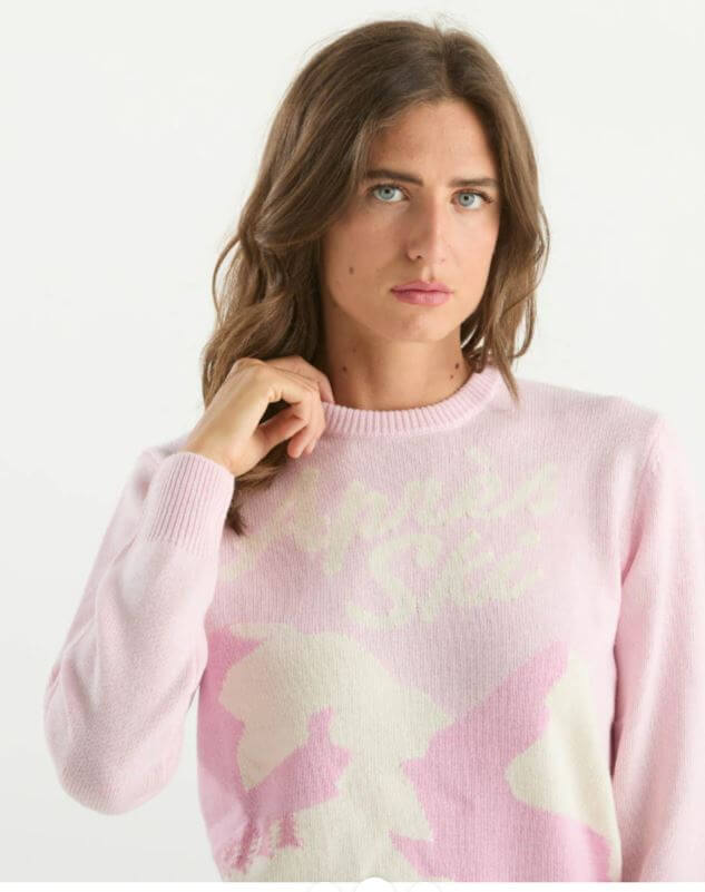 Maglione MC2 SAINT BARTH donna NEW QUEEN in misto cashmere ROSA con jacquard BELLA E IMPOSSIBILE