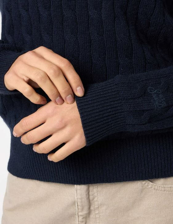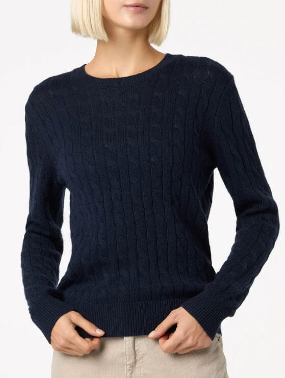 Maglione MC2 SAINT BARTH donna Sorbonne lavorato a maglia a trecce in pura lana – NIGHT BLUE