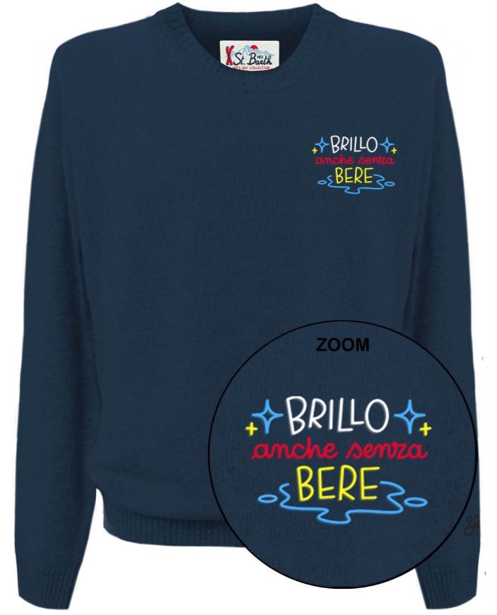 Maglione MC2 Saint Barth girocollo Heron Light con ricamo ”BRILLO anche senza BERE”