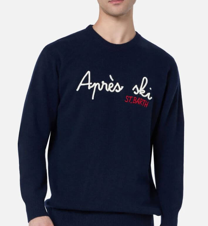 Maglione uomo MC2 Saint Barth girocollo Heron con ricamo ”Apres Ski”