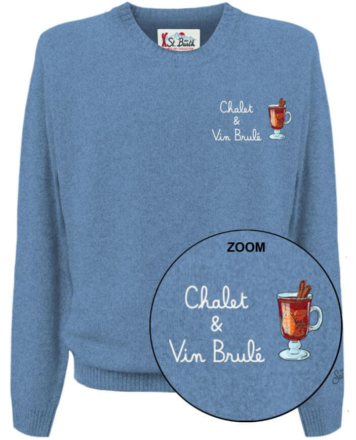 Maglione uomo MC2 Saint Barth girocollo Heron Light con ricamo ”Chalet & Vin Brulé”