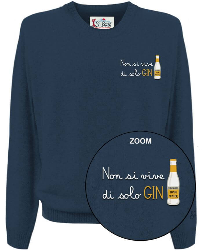 Maglione uomo MC2 Saint Barth girocollo Heron Light con ricamo ”Non si vive solo di GIN”