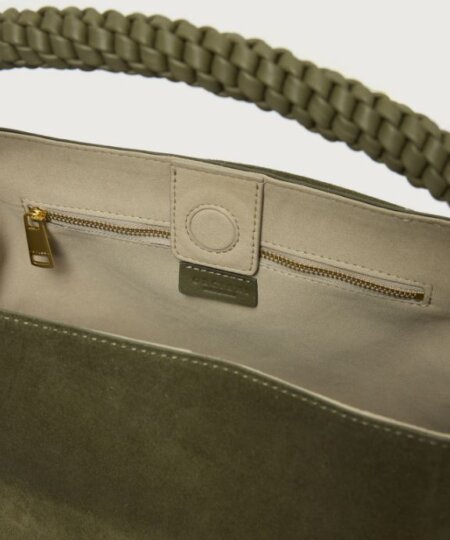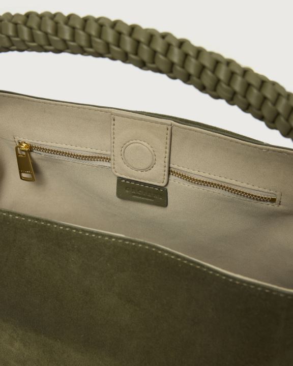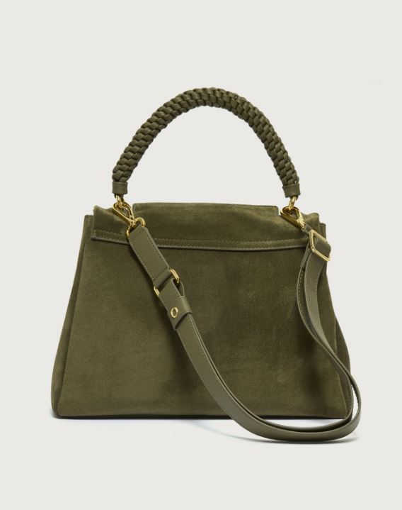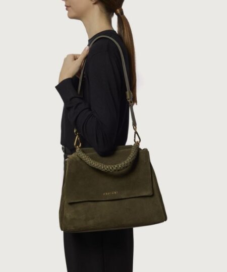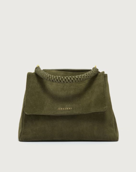 ORCIANI Borsa Sveva Peach Media a spalla in suede con tracolla – bosco