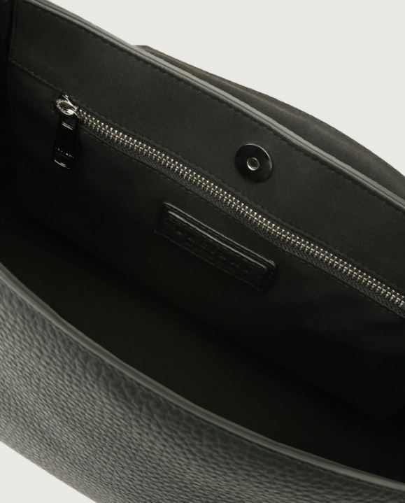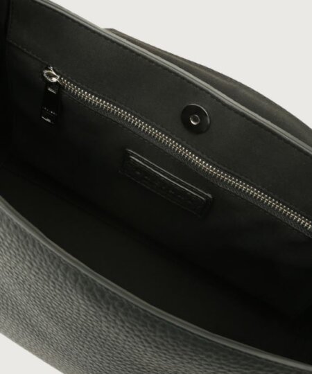 La morbida pelle martellata e l’apertura a scomparsa consentono di accedere comodamente all’interno della borsa senza sollevare la patta. La tasca interna con zip è personalizzabile in oro o argento con un massimo di 3 iniziali, per renderla un accessorio unico e prezioso.