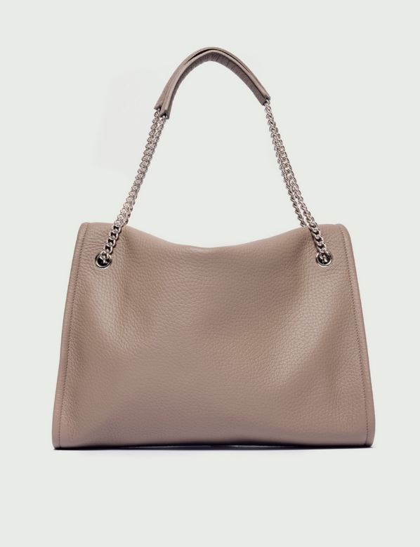 ORCIANI Borsa Venus Soft Midi a spalla in pelle martellata – taupe