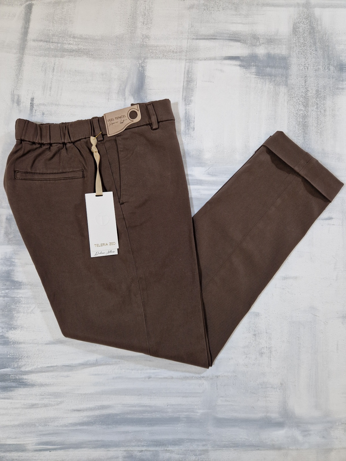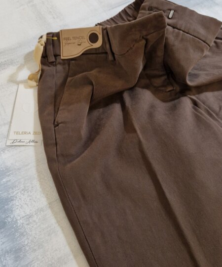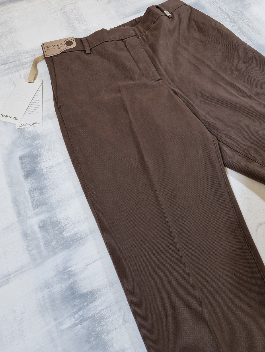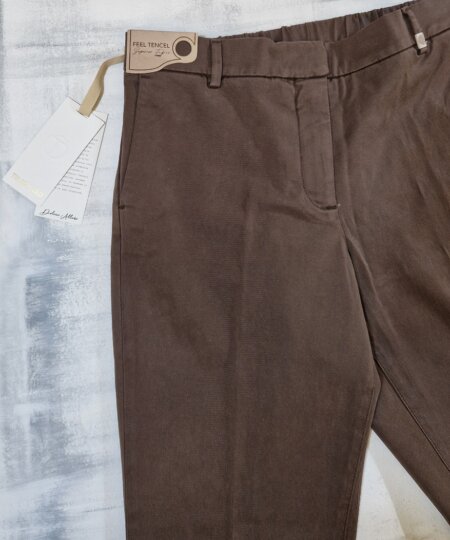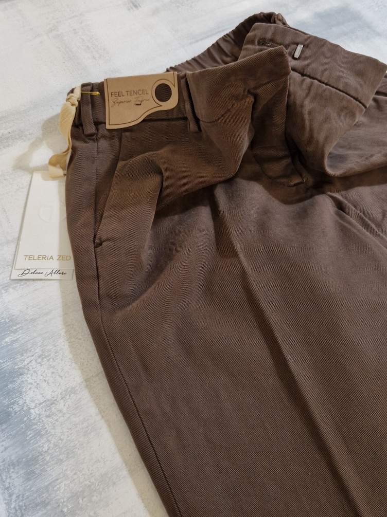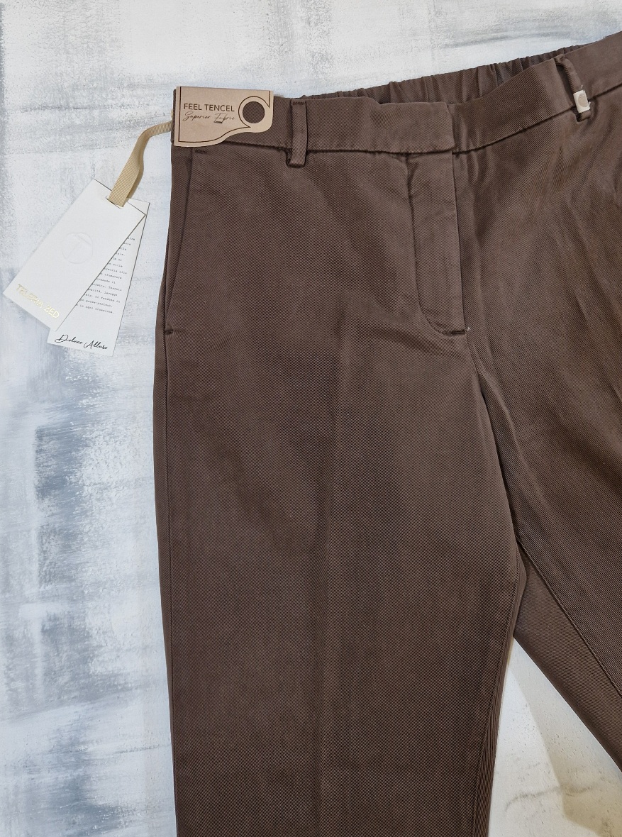 Pantalone morbido in misto cotone donna con elastico in vita, tasca francia sui fianchi, tasche a filetto sul retro, risvolto.