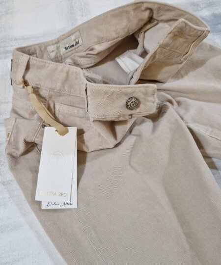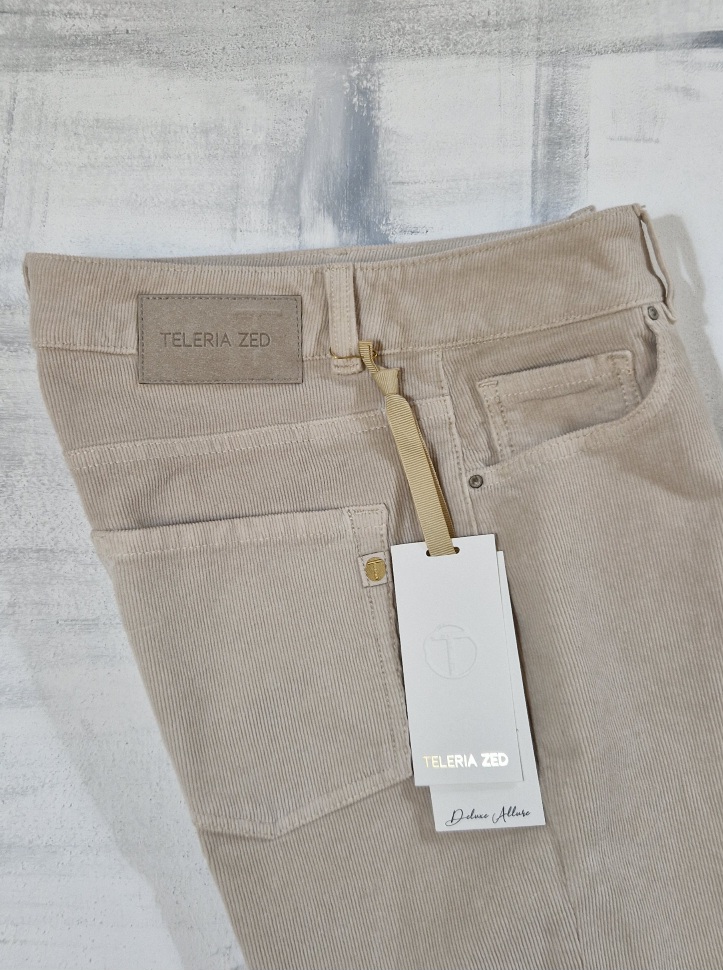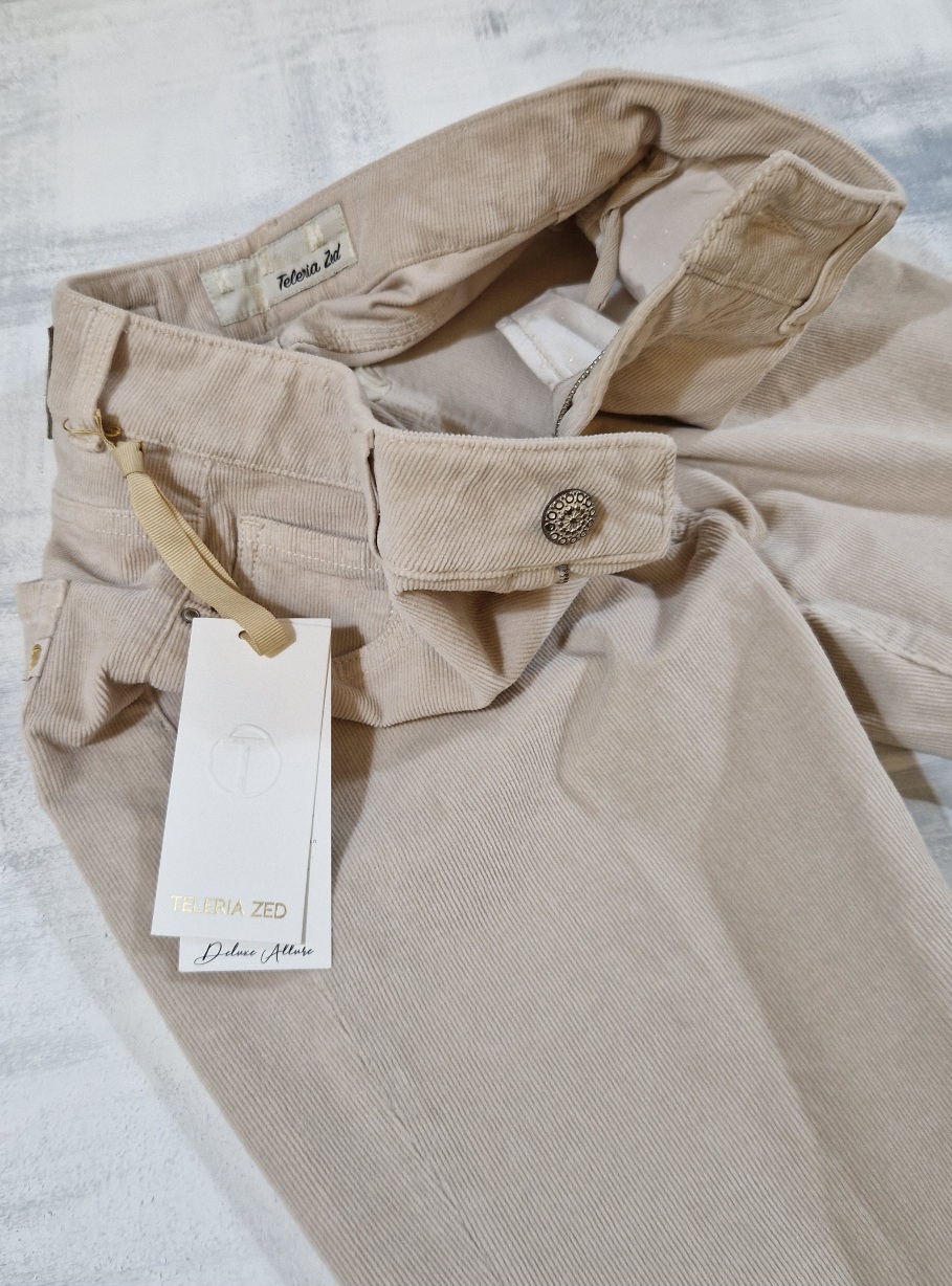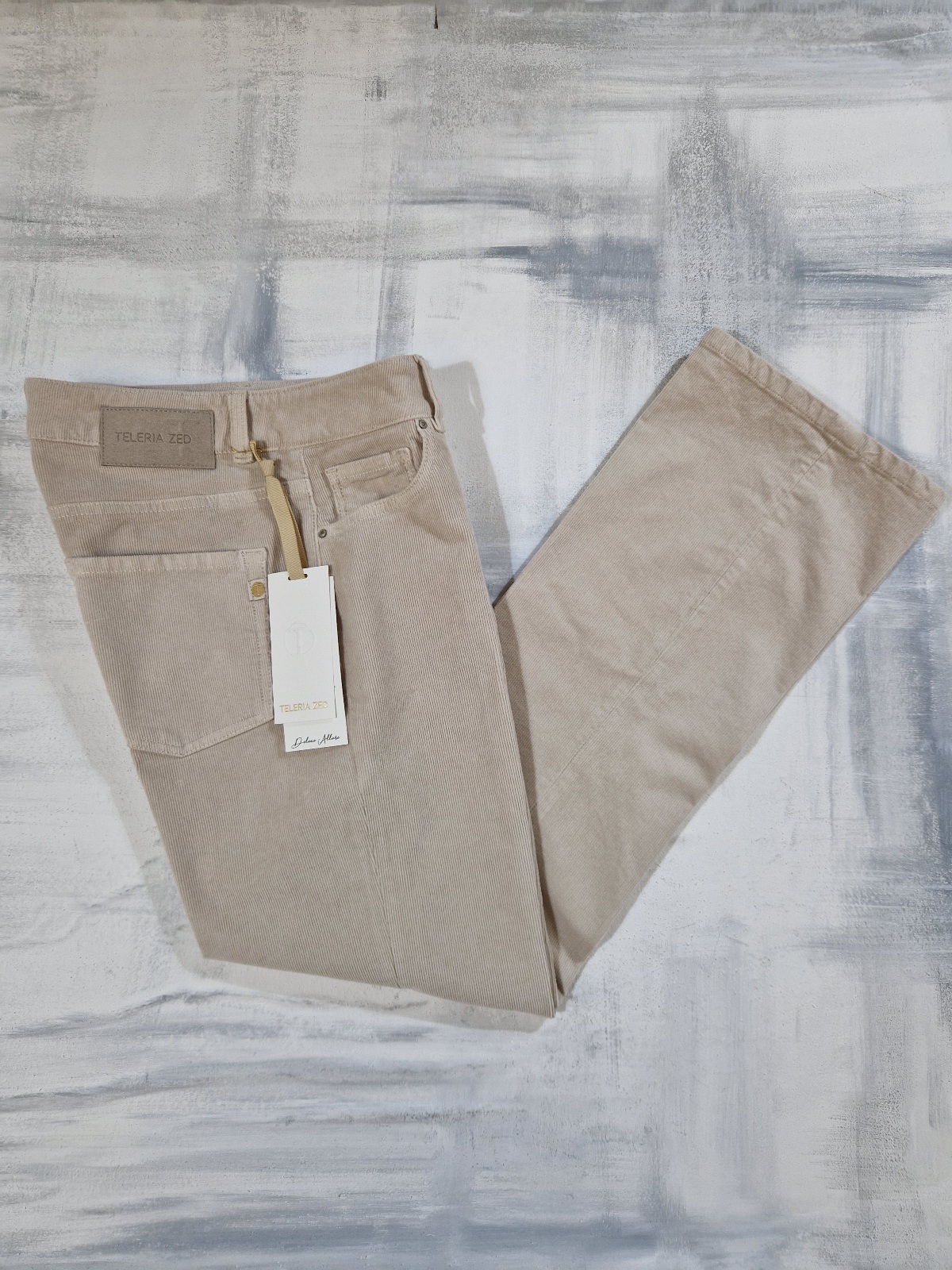 Pantalone donna in velluto millerighe a trombetta, 5 tasche, taglio jeans,