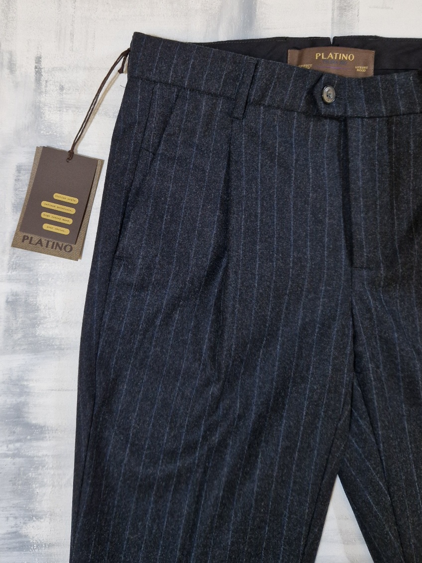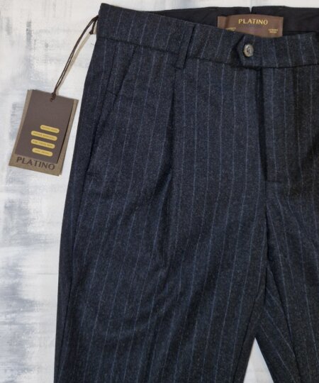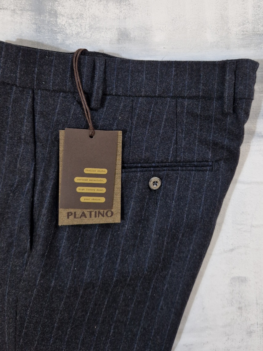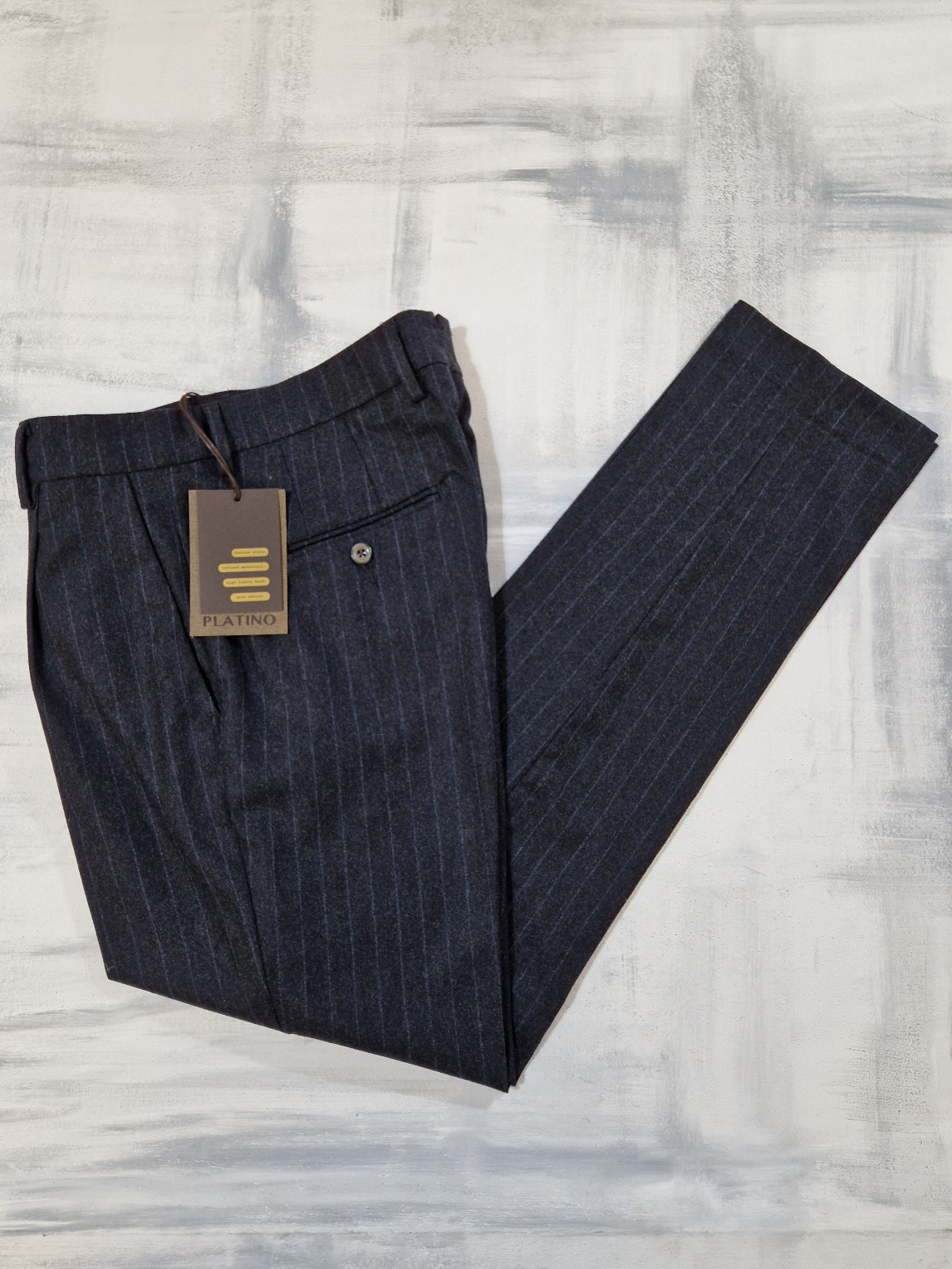 Pantalone Teleria Zed gessato in lana Reda Flexo, con pence, tasca francia sui fianchi, tasche a filetto sul retro, fondo 17.