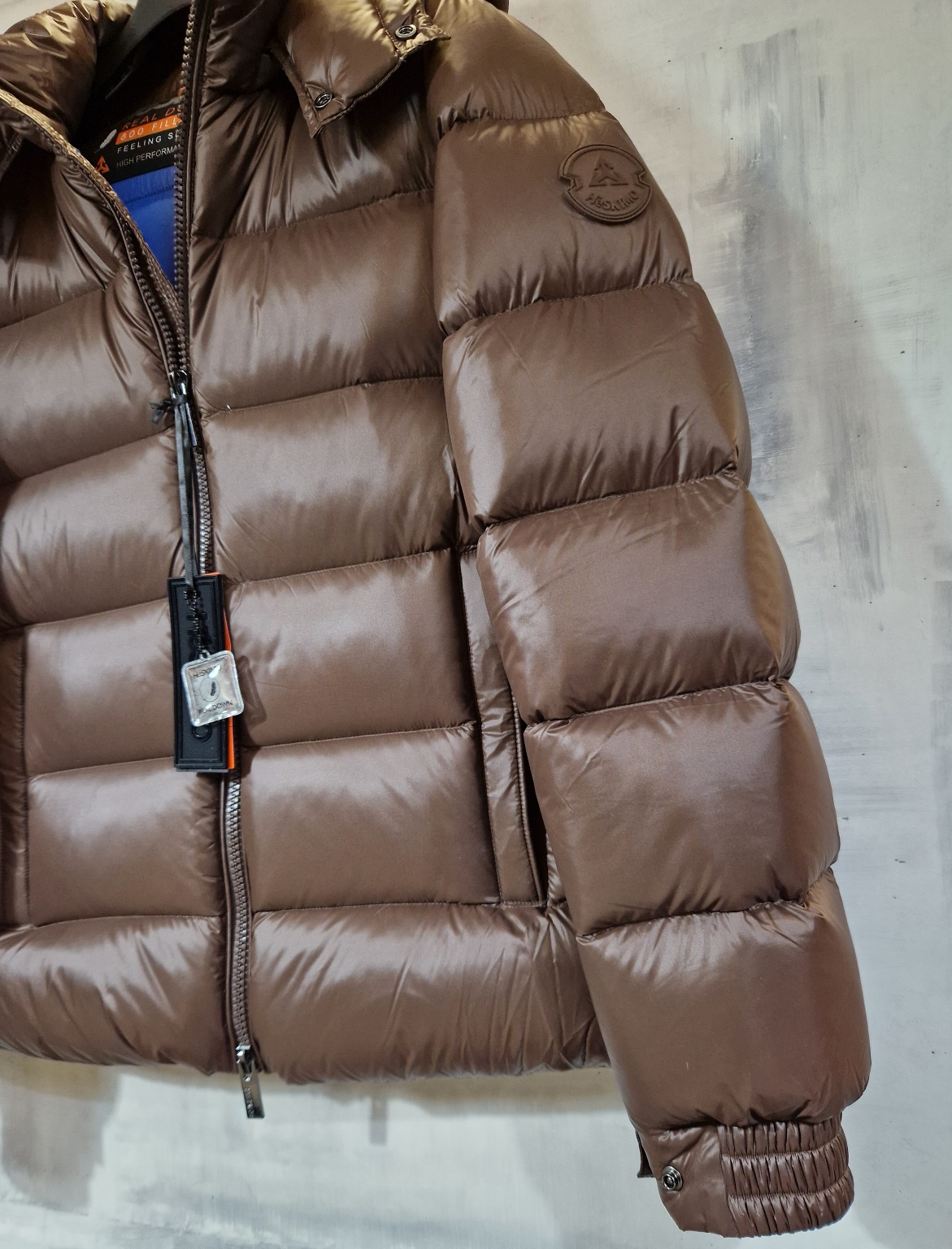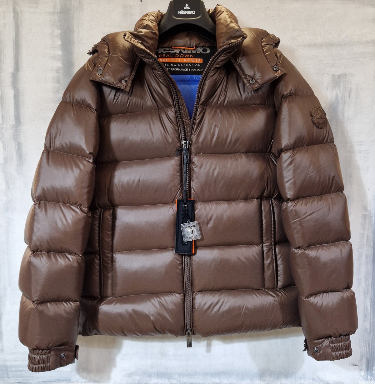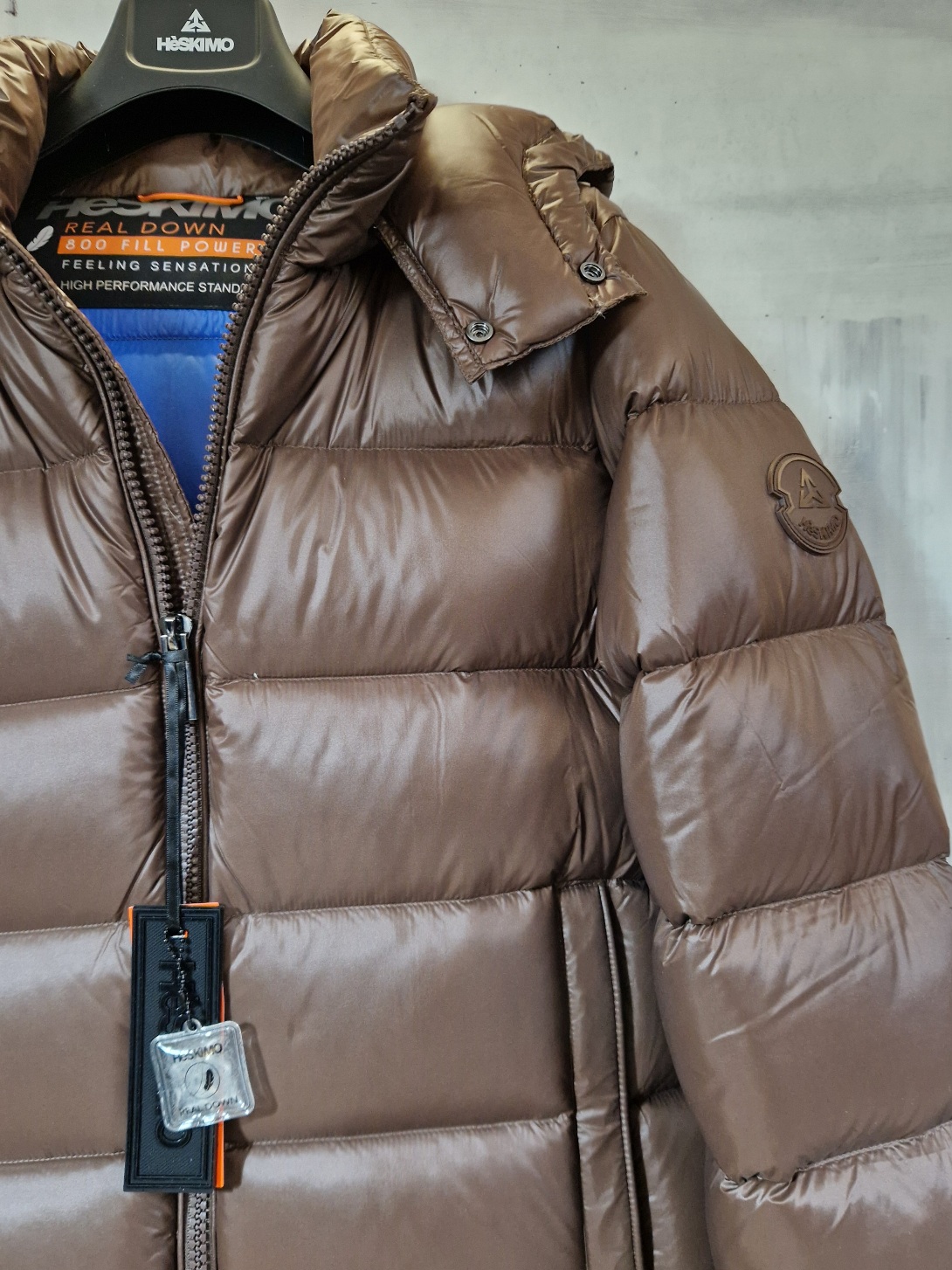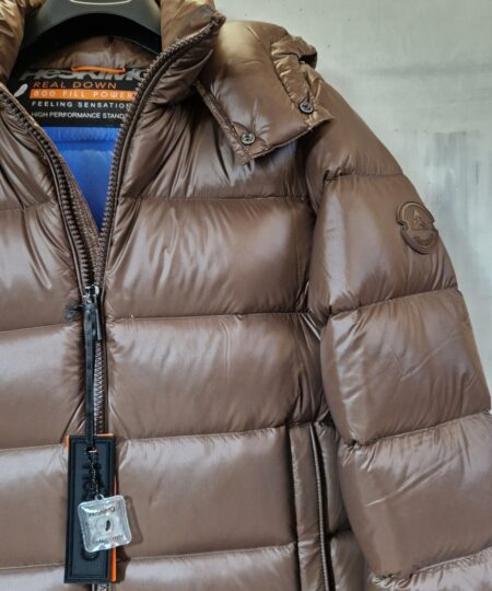 Piumino Bomber HESKIMO imbottito in vera piuma con cappuccio staccabile CIOCCOLATO interno BLUETTE