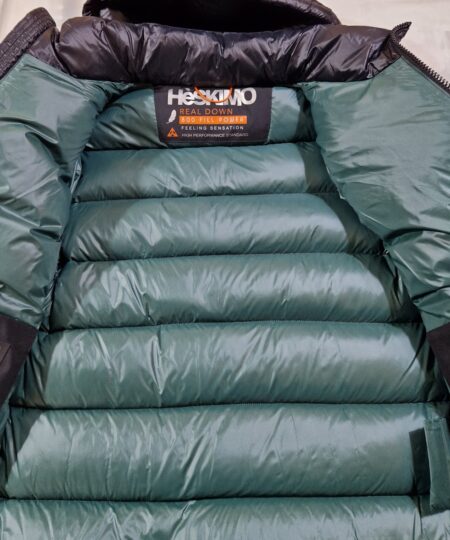 Piumino Bomber HESKIMO imbottito in vera piuma con cappuccio staccabile NERO interno VERDE