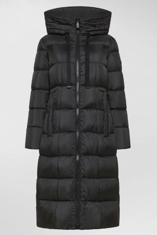Piumino lungo ad ampie trapunte orizzontali, realizzato in tessuto super-light 100% poliestere riciclato post consumo, dalla mano morbida, finitura semi-opaca e struttura ultra compatta. L’imbottitura in piuma naturale certificata assicura un calore elevato senza appesantire. I dettagli tecnici – collo alto, cappuccio fisso regolabile, chiusura con zip a doppio cursore e ampie tasche laterali – ne esaltano la praticità. Il trattamento idrorepellente PFC Free protegge dalla pioggia leggera senza l’utilizzo di sostanze chimiche dannose. Ideale per chi apprezza la comodità senza rinunciare all’eleganza.