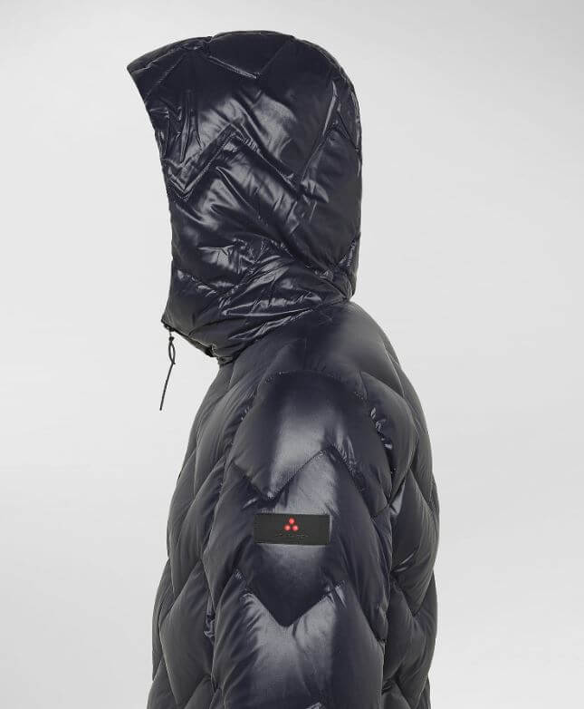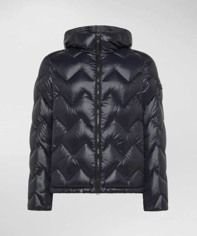Piumino corto in nylon super leggero, caratterizzato da una particolare lucentezza e da una mano fluida e morbida. La trapunta a motivo chevron, dinamica e grafica, dona al capo un carattere distintivo. Parte della linea Color in cui i disegni geometrici prendono vita ed esaltano i piumini della sezione, un concept giocoso e ironico che reinterpreta il capospalla in modo creativo ed easy. L’imbottitura in piuma naturale certificata garantisce calore e leggerezza ideali durante la stagione fredda. Il cappuccio fisso regolabile, la full zip centrale a doppio cursore e i dettagli neri a contrasto completano un look dinamico e moderno. Parte della linea Color, questo piumino, wind resistant e water repellent, interpreta il capospalla in modo creativo e giocoso, con un’estetica distintiva e immediata, ideale per chi non ama passare.