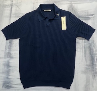 Polo manica corta LORENZONI in cotone colletto smedley senza bottoncini lavorata coste – Blu 490