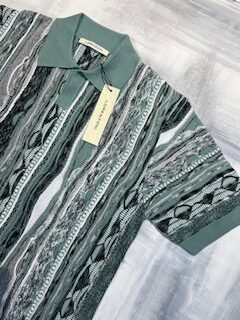 Polo manica corta Lorenzoni in misto cotone, colletto smedley senza bottoncini, lavorata motivo verticale fantasia