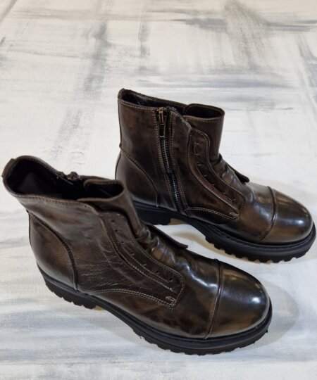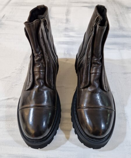 Scarponcino donna in pelle con zip laterale senza lacci PAWELK’S Crust Brandy W1173
