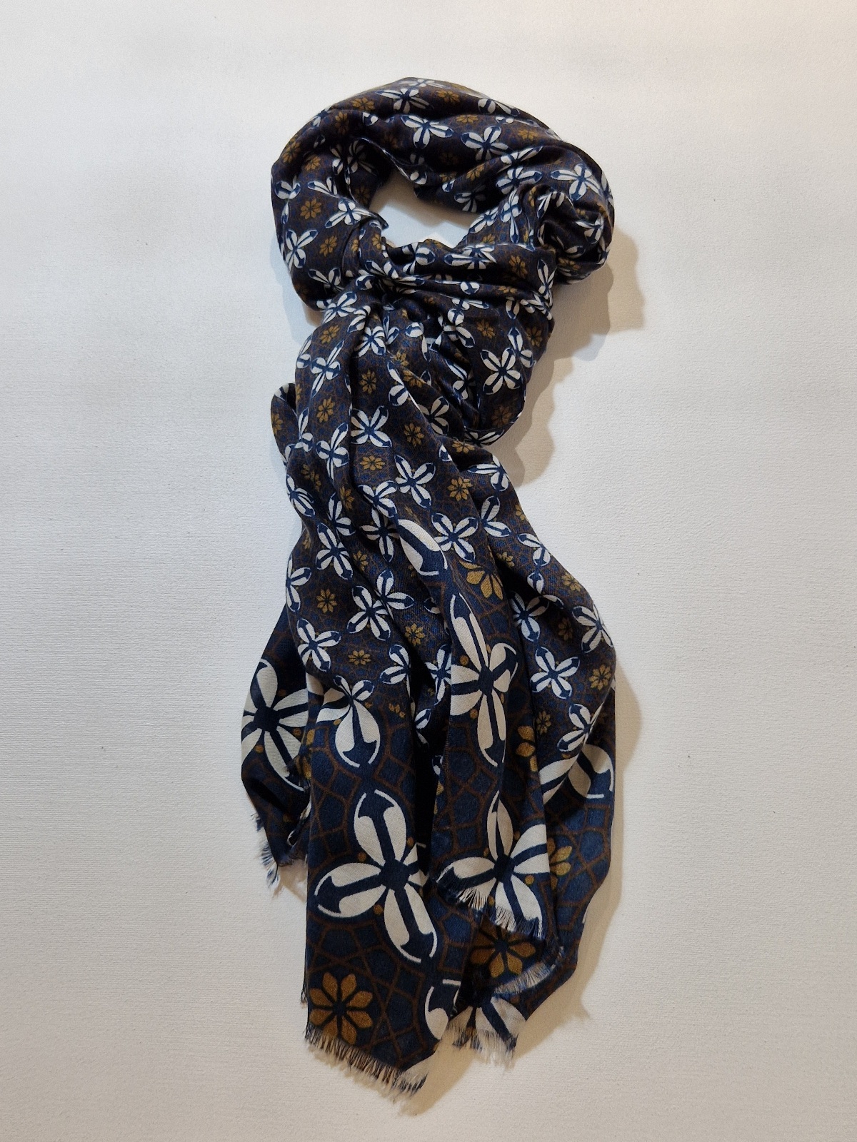 Sciarpa in lana 1829 SPILLI fantasia floreale BLU / MORO