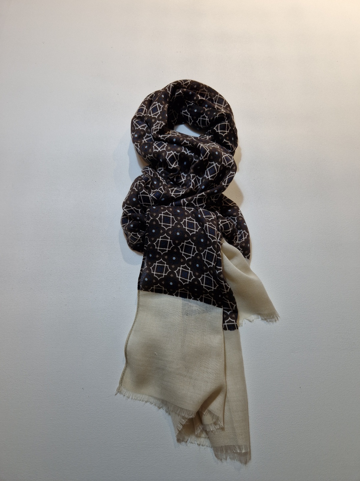 Recensisci per primo “Sciarpa in lana 1829 SPILLI fantasia geometrica BLU / MORO / BIANCO”