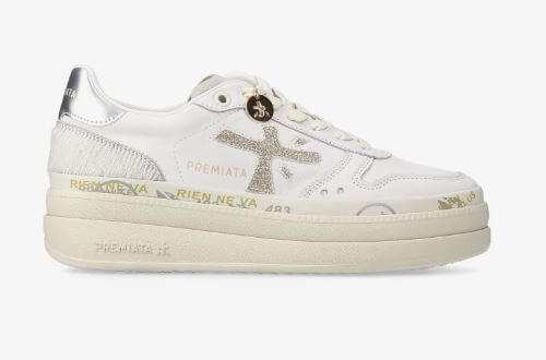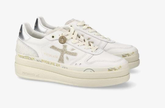 Tra i nuovi must have di Premiata. Lo stile raggiunge nuove vette, unendo design come la suola platform doppio strato con un’intersuola impreziosita dagli iconici timbri del brand.