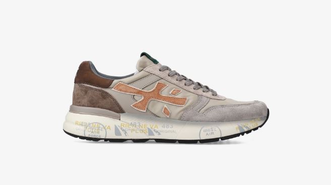 Sneakers Mick in mix di materiali e pellami di qualità. La scarpa è realizzata nella tonalità del tan per uno stile casual. L’iconica silhouette è arricchita dal logo Premiata.