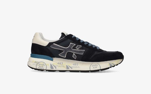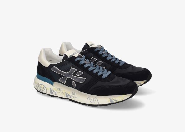Un mix di materiali e pellami di qualità. La scarpa è realizzata nelle tonalità del blu per uno stile casual. L’iconica silhouette è arrichita dal logo Premiata.
