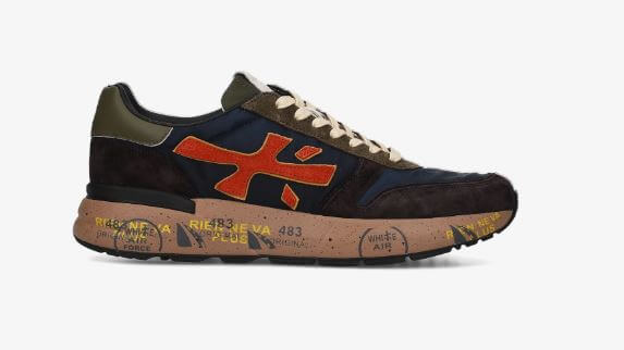 Sneakers Mick in mix di materiali e pellami di qualità. La scarpa è realizzata nella tonalità del blu per uno stile casual. L’iconica silhouette è arricchita dal logo Premiata.