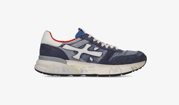 Un mix di materiali e pellami di qualità. La scarpa è realizzata nella tonalità del blu per uno stile casual. L’iconica silhouette è arrichita dal logo Premiata.